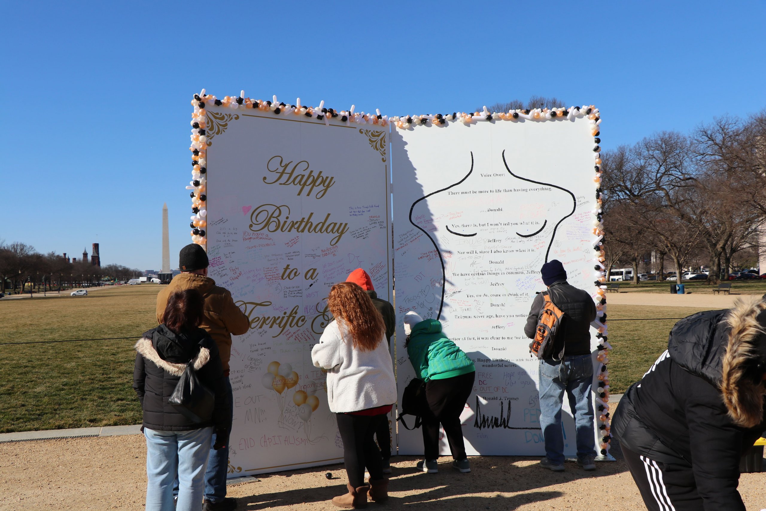 WASHINGTON D.C. — On the coldest day of the year, University of Maryland English professor Orrin Wang came to the National Mall on Tuesday to see the anonymous art group The Secret Handshake’s latest protest piece against the Trump administration.