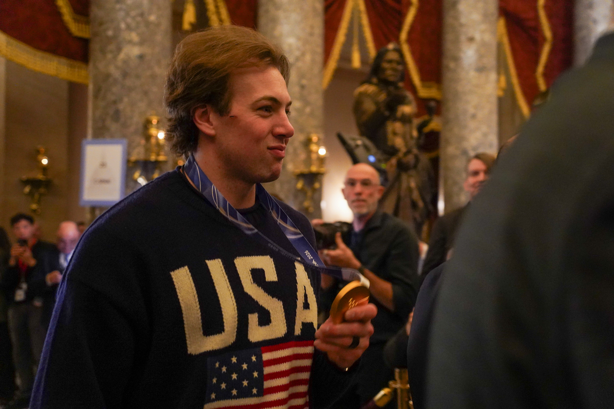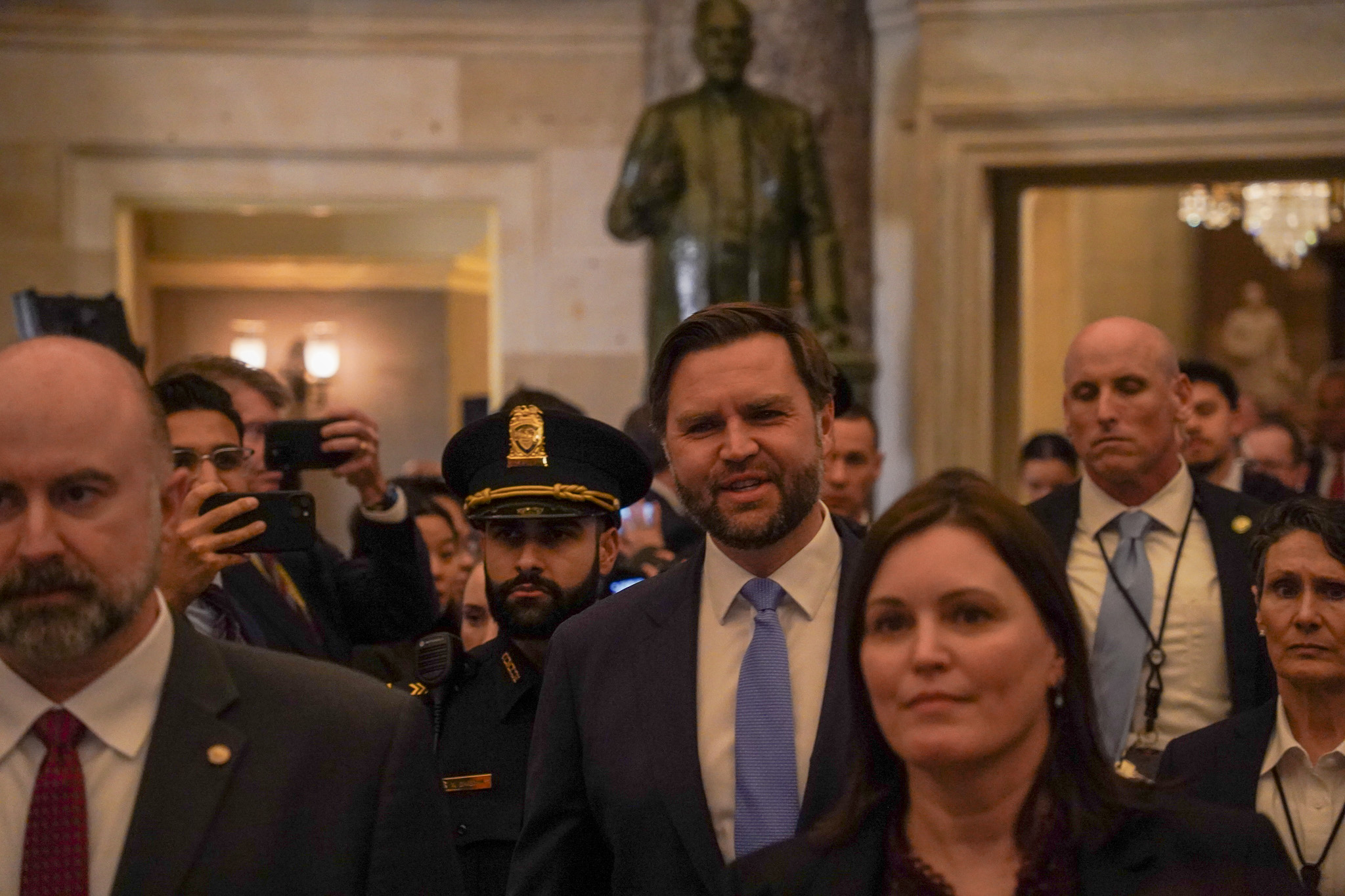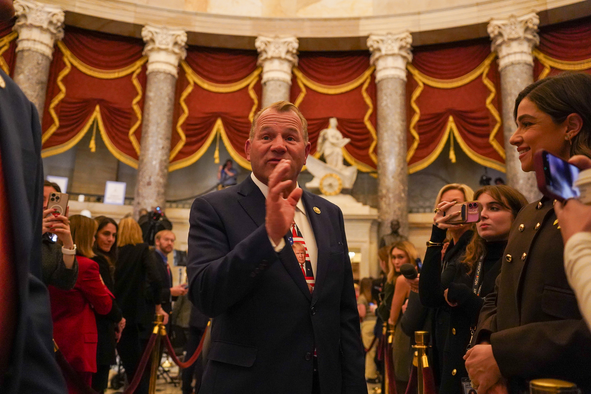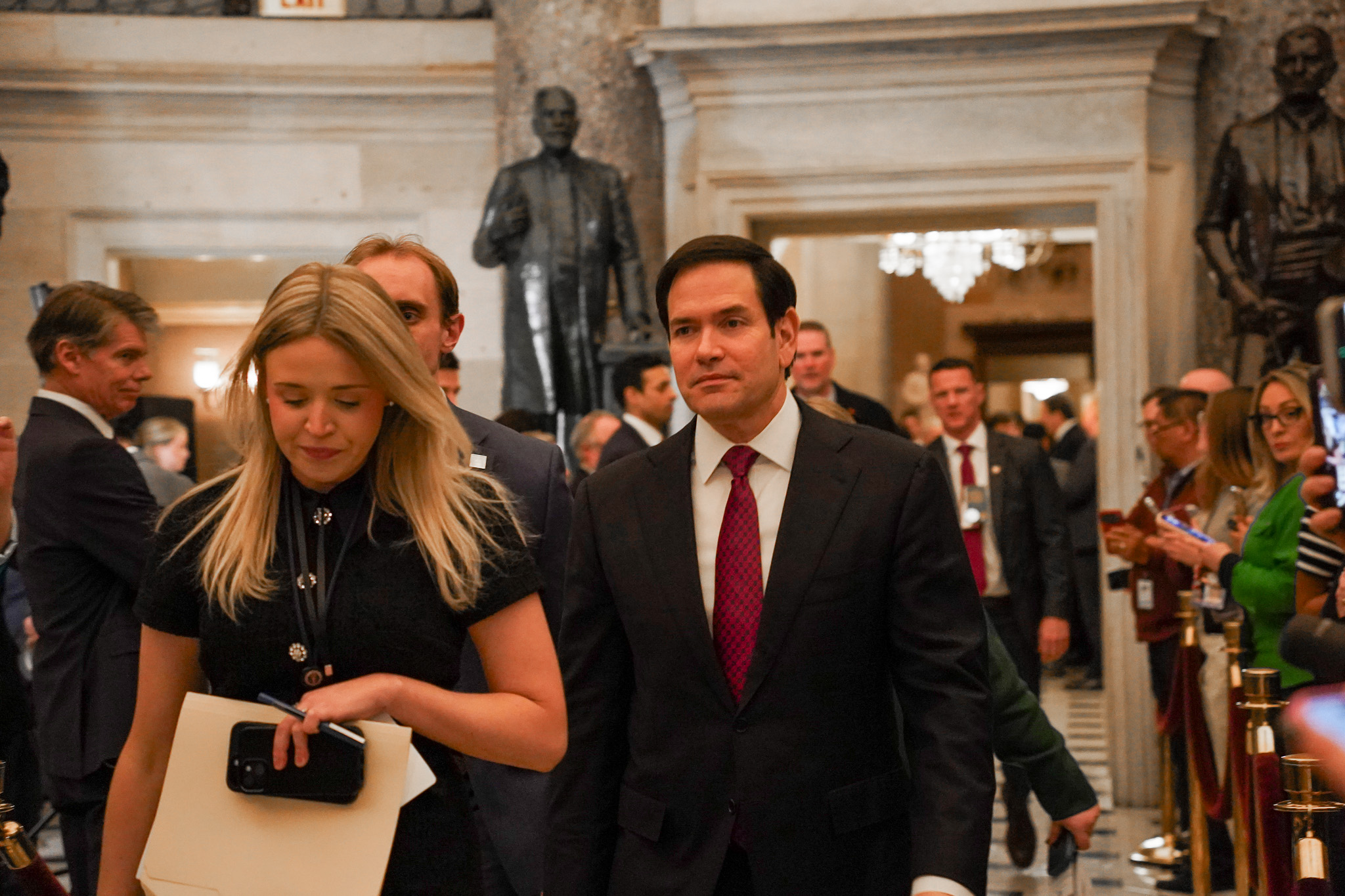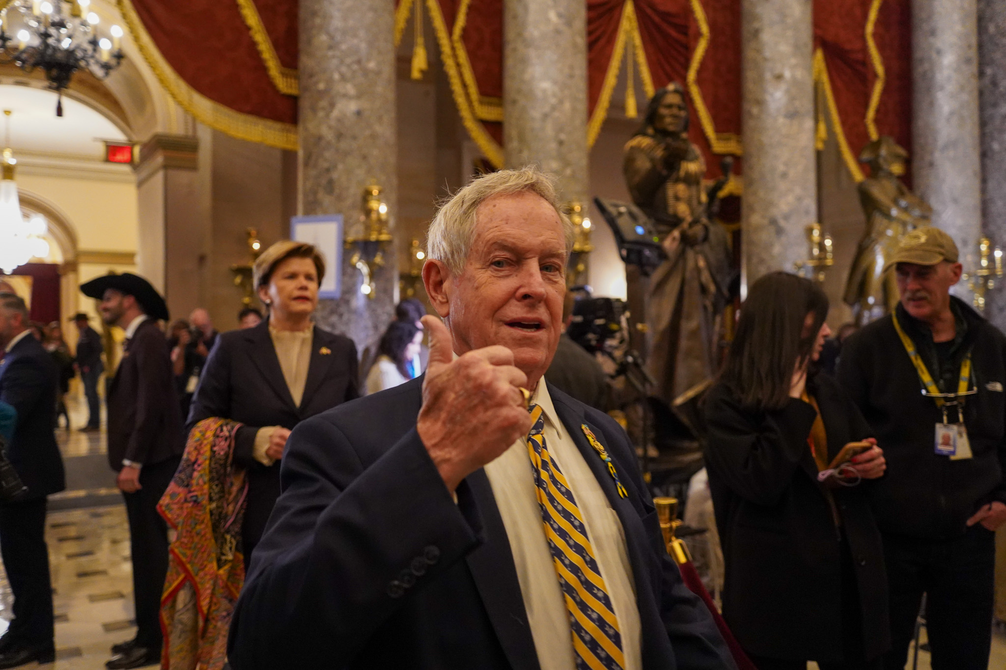 Rep. Kat Cammack, R-Colo., stops to take a selfie as she walks down the press aisle. (Cayla Labgold-Carroll/MNS)Vice President JD Vance briskly walked past the press before entering the House chamber. (Cayla Labgold-Carroll/MNS)President Donald Trump invited members of the Men’s Olympic Hockey team to the State of the Union.(Cayla Labgold-Carroll/MNS)Secretary of State Marco Rubio received praise from Trump for over a minute during the address. (Cayla Labgold-Carroll/MNS)Rep. Elizabeth Warren, D-Mass., entered with the majority of senators, followed by their pages. (Cayla Labgold-Carroll/MNS)Rep. Tony Welhs, R-Texas, wore a Trump tie to the address that Trump later signed. (Cayla Labgold-Carroll/MNS)CLC06807Secretary of Commerce Howard Lutnick entering the House chamber. (Cayla Labgold-Carroll/MNS)Rep. Joe Wilson, R-S.C., flashes a thumbs up to cameras as he passes through Statuary Hall. (Cayla Labgold-Carroll/MNS)George Washington’s gavel was displayed by Speaker Mike Johnson during the State of the Union address. (Cayla Labgold-Carroll/MNS)Many representatives chose to wear pins on their chests signifying various political stances, including “Release the files” and butterfly pins. (Cayla Labgold-Carroll/MNS)The senators were followed by their pages, who aid the senators daily and are typically 16-17 years old. (Cayla Labgold-Carroll/MNS)