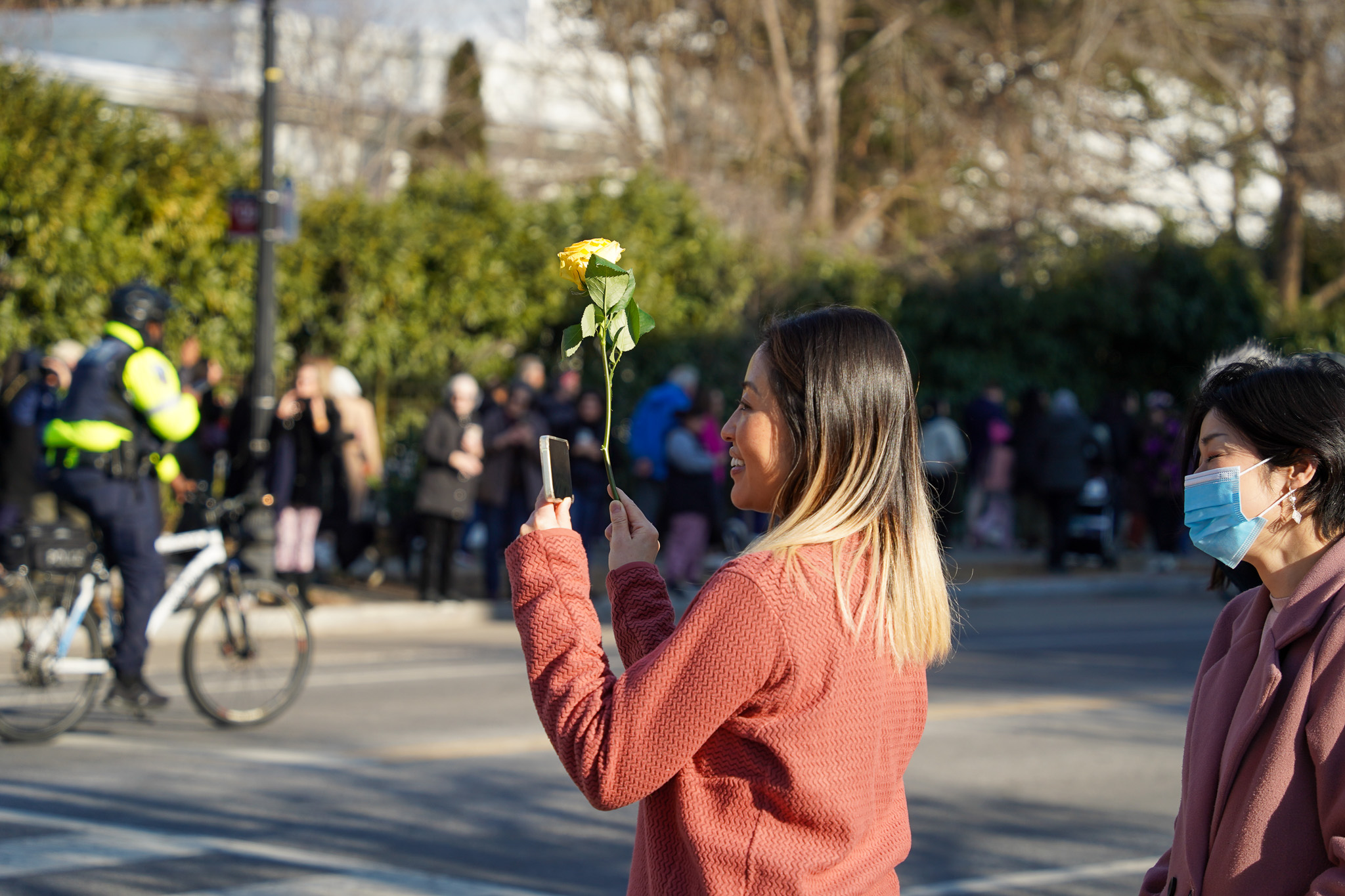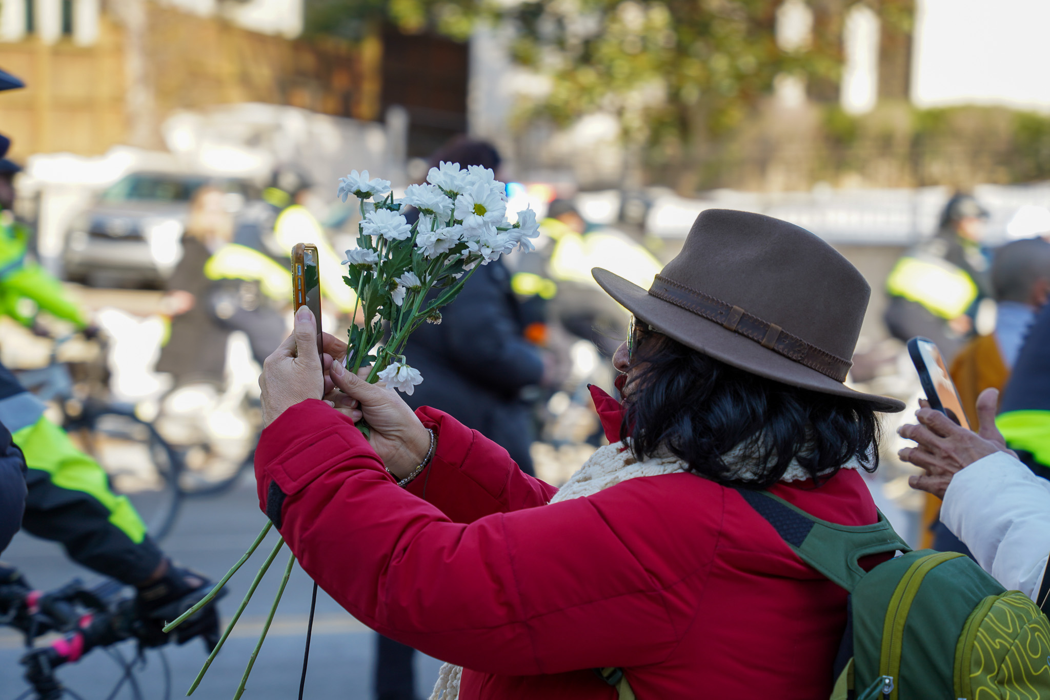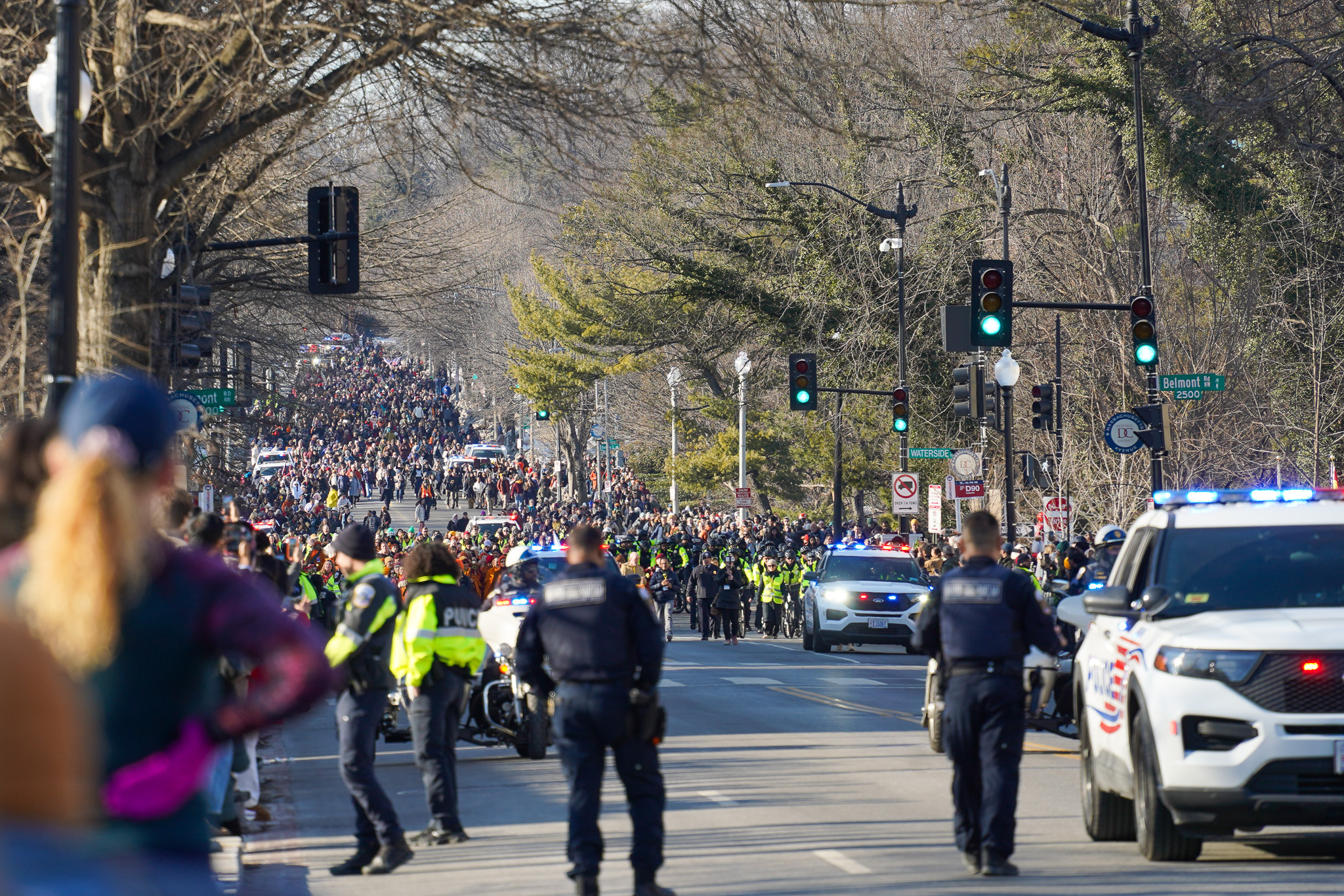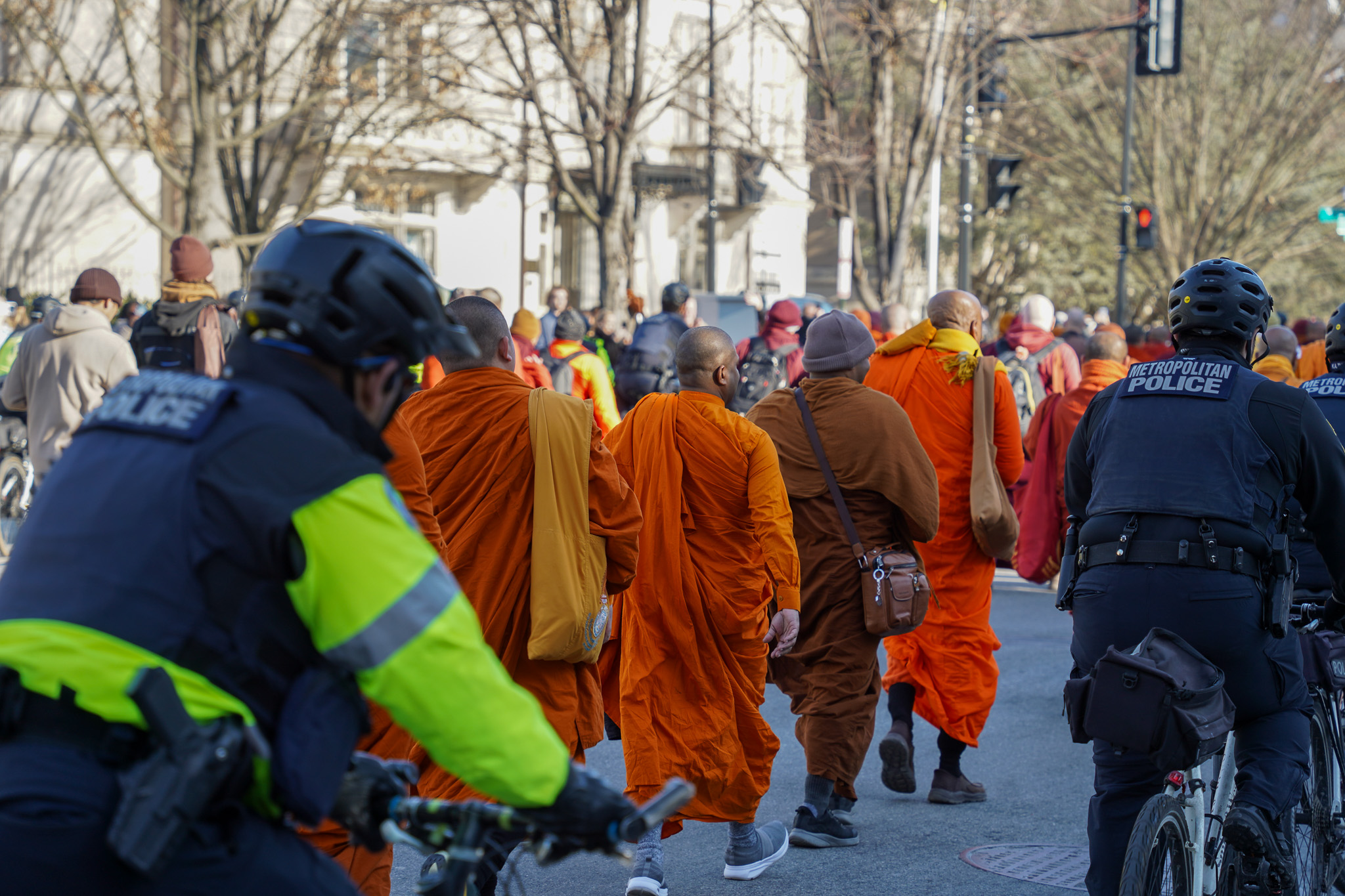 D.C. police escorted the monks down the street with cars, motorcycles and police bikes.