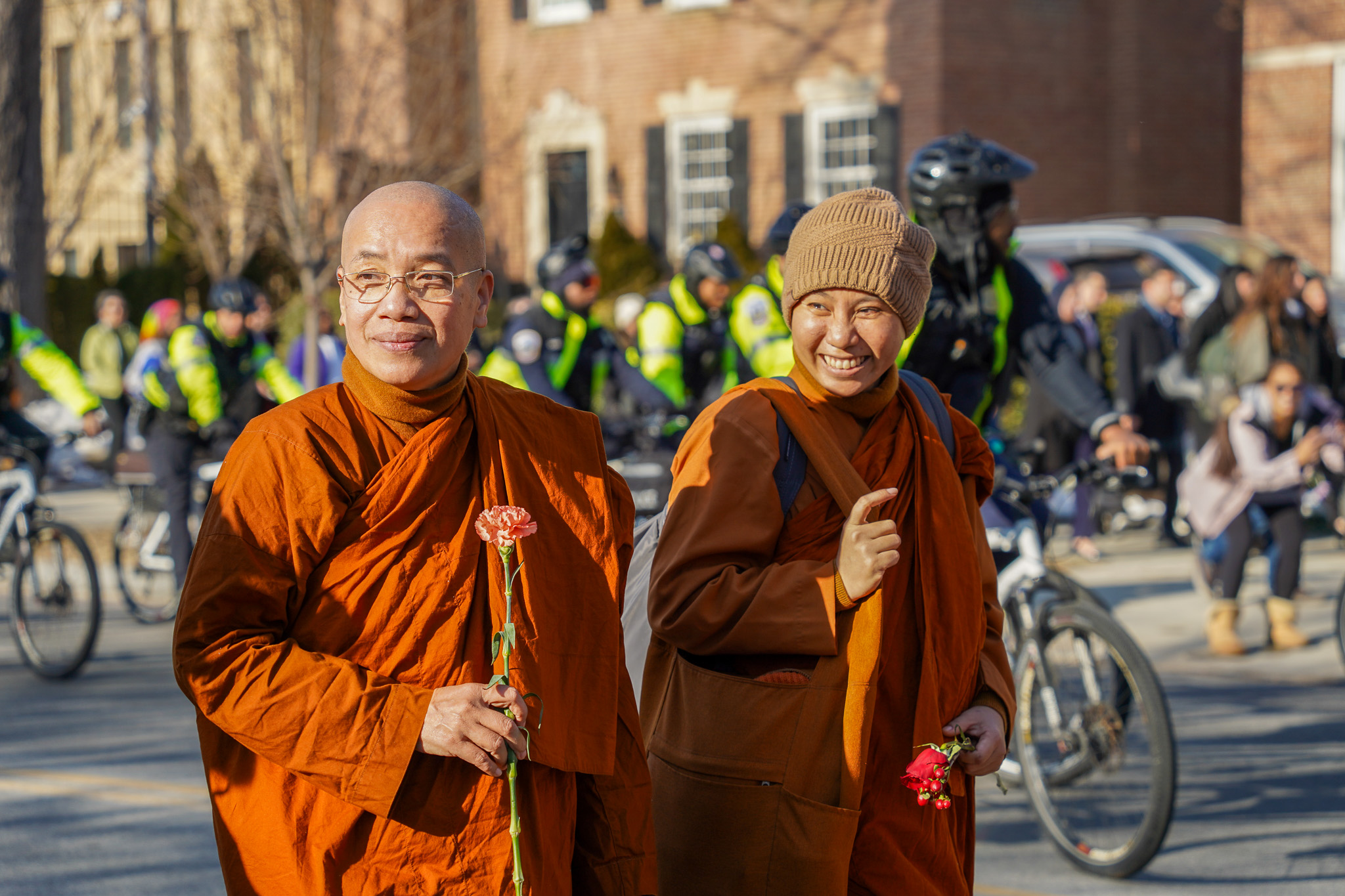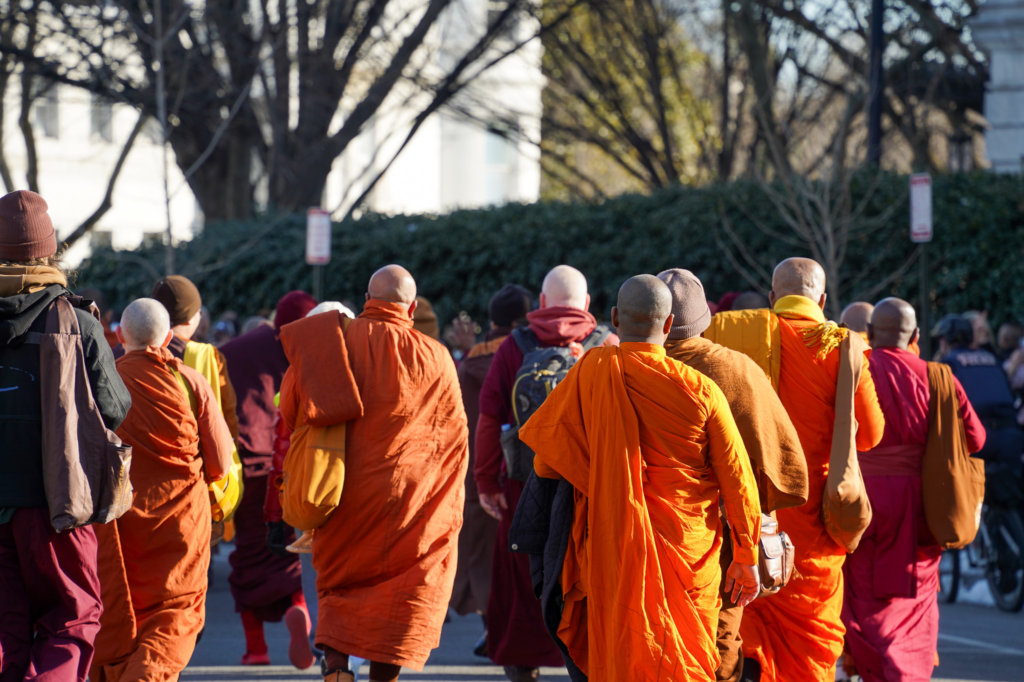 After an interfaith ceremony at the Washington National Cathedral, the monks were joined by others for a Unity Walk down Embassy Row.